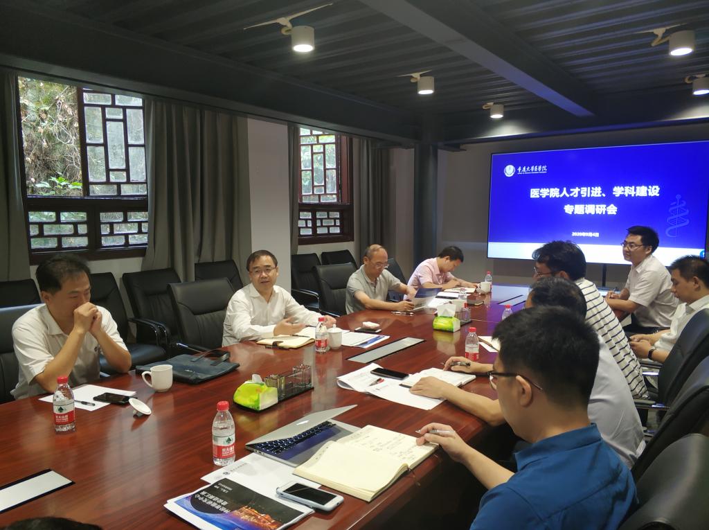 2020年9月4日下午,校长张宗益莅临医学院就人才引进、学科建设进行专题调研。校长办公室、发规处、人事处、双一流建设办公室等相关职能部处负责人一同参加调研,医学院领导班子、教师代表参加了调研座谈会。