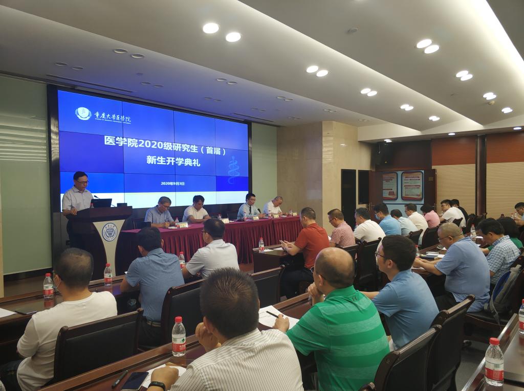 3日下午医学院2020级研究生(首届)新生开学典礼于A区主教学楼504会议室召开。医学部、医学院领导、学位评定分委会委员、首批硕士研究生导师代表、各附属医院代表、全体研究生等100余人参加典礼。