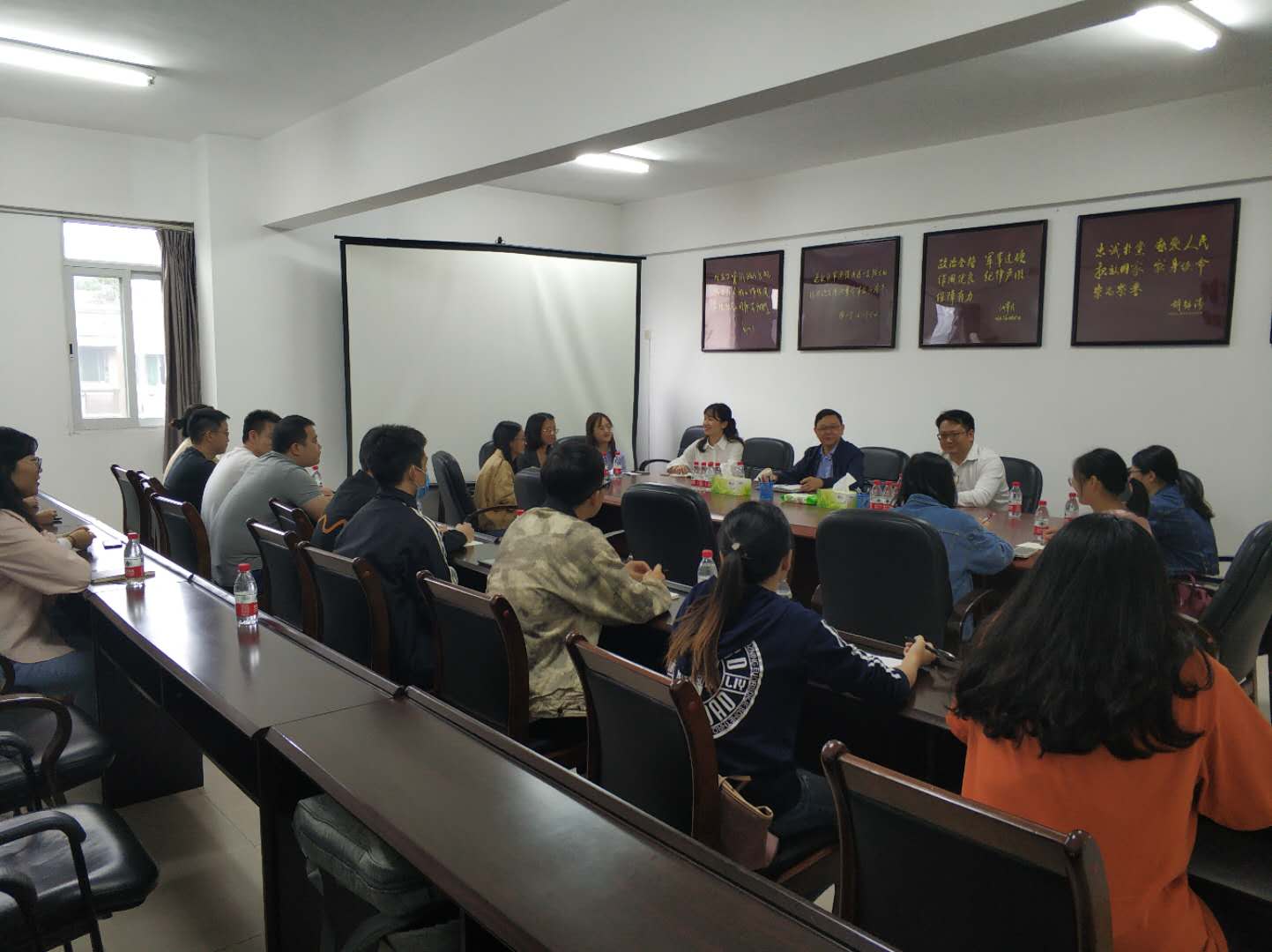 走访宿舍后,刘国祥一行与20余名新生代表在陆军军医大学研究生院会议室开展座谈,就课程学习等话题进行深入交流。会上,学院领导和工作人员认真倾听和记录学生们所反映的入学以来的感受,并结合实际情况针对新生代表提出的关于课程教学、学生活动、校园管理、宿舍网络等方面的具体问题进行了详细解答。