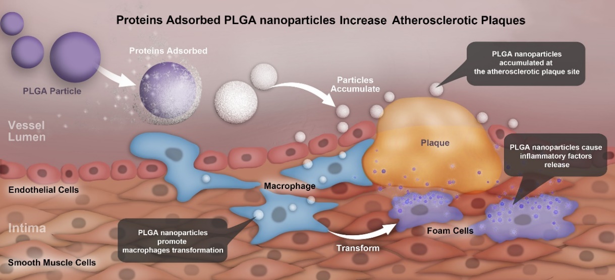 示意图:PLGA纳米颗粒吸附蛋白介导促进动脉粥样硬化斑块形成