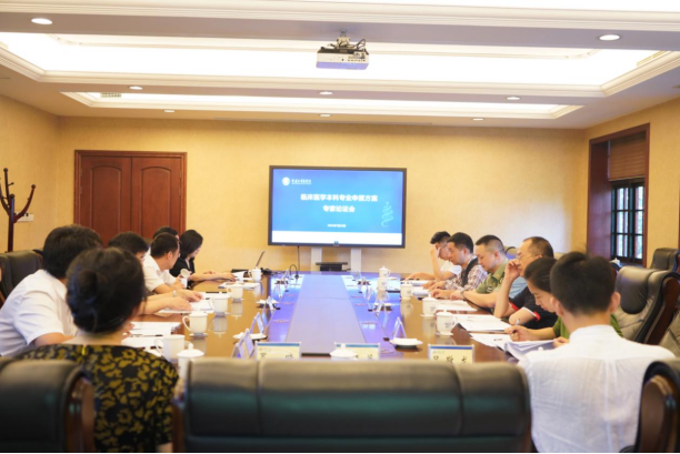 2021年7月22日,重庆市卫生健康委员会组织召开我校医学院临床医学本科专业培养方案专家论证会。陆军军医大学第一附属医院院长吴昊教授,四川大学华西基础医学与法医学院副院长刘肖珩教授,重庆市人民医院党委委员、副院长周维康教授,陆军军医大学全科医学系副主任邹丽琴教授,重庆市教育委员会高教处副处长魏巍作为特邀专家莅临参会。重庆市卫生健康委员会科教处李小成处长,医学院及附属医院有关领导和同志一同参会。李小成主持会议。