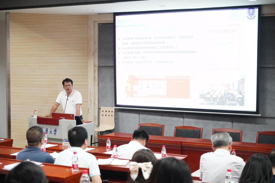 2021年7月27日下午,医学院在学校C校区第一教学楼组织召开了2021年春季学期工作总结会暨暑期工作安排会。医学部主任兼医学院院长刘国祥出席会议,医学院直属支部书记、副院长王亚洲主持会议,医学院全体教职工参加会议。