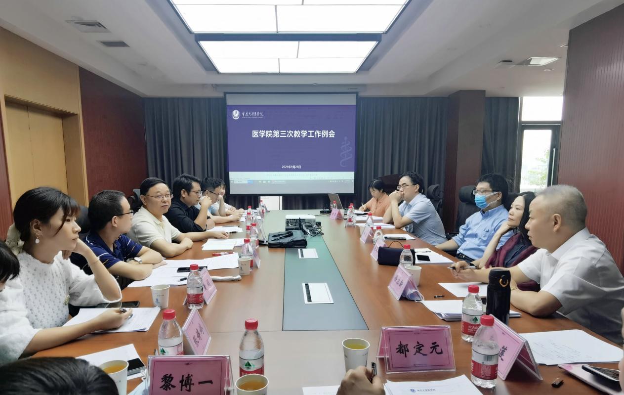 2021年9月28日下午,医学院第三次教学工作例会在附属中心医院举行。医学部主任兼医学院院长刘国祥,医学院直属支部书记、副院长王亚洲,医学部综合办公室副主任张赛,附属肿瘤医院院长徐波,附属三峡医院副院长徐立新,附属涪陵医院副院长李鱼,附属中心医院副院长都定元,以及医学部、学校图书馆、各附属医院分管教学、科研、人事方面工作的同志参会。王亚洲主持会议。