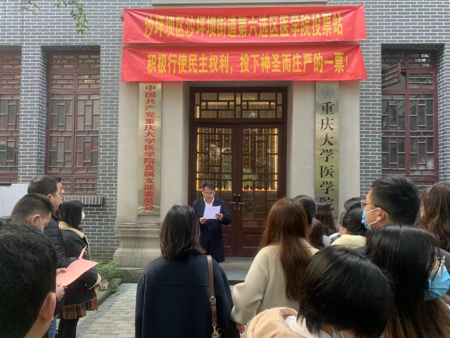 2021年12月3日上午8时,重庆市沙坪坝区沙坪坝街道第六选区人大代表选举工作在医学院开展。