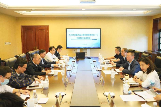 2022年4月20日下午,重庆两江新区党工委委员、管委会副主任皮涛率队来校交流座谈。两江新区投资集团财务总监段虹, 两江新区招商集团副总裁朱永泽,两江新区社会发展局局长梁应霞,两江新区水土投资公司副总经理周建国等参加座谈。校党委常委、副校长邓绍江,医学部主任兼医学院院长刘国祥接待来访,医学部、医学院、药学院、生物工程学院相关负责人参加了会议。