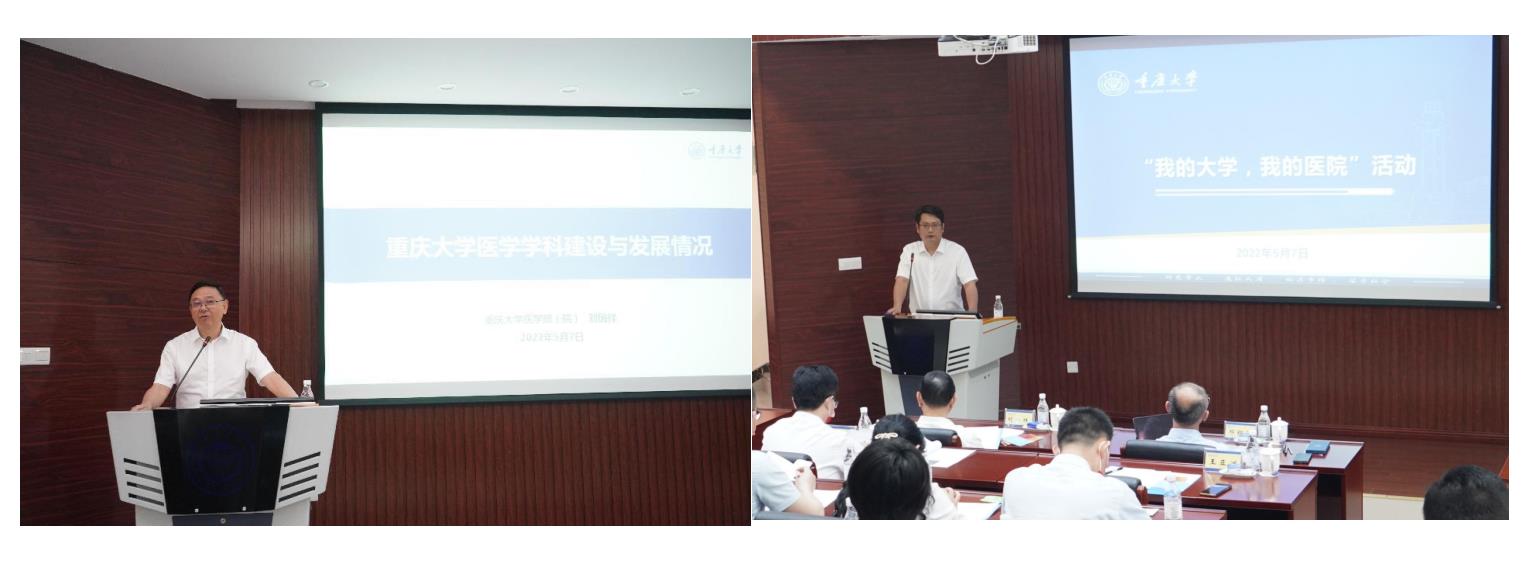 2022年5月7日至8日,重庆大学第一届“我的大学,我的医院”活动在学校C校区举行,学校党委常委、副校长邓绍江出席活动。本次活动由医学院主办,来自学校7家附属医院(附属肿瘤医院、附属三峡医院、附属中心医院、附属涪陵医院、附属江津医院、附属黔江医院、附属沙坪坝医院)的主要院领导、中层干部、学科骨干代表参加此次活动。本次活动通过组织到校参观、校情解读、校史学习、专题论坛等内容形式,旨在使附属医院职工进一步认识重大、了解重大、爱上重大、融入重大,激发对学校的认同感和自豪感,加强学校和医院间的医教研协同发展。