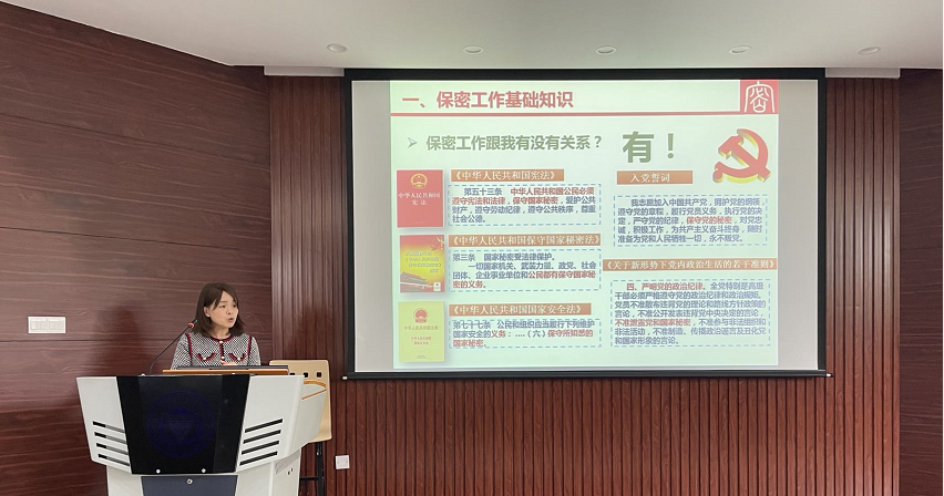 张建平从保密工作基础知识出发,旁征博引、剖析案例,对保密工作遇到的新形势、新任务,常见问题及防范等内容作了深入浅出的讲解,拓宽了学院师生保密知识面,起到了警钟长鸣、防微杜渐的效果。