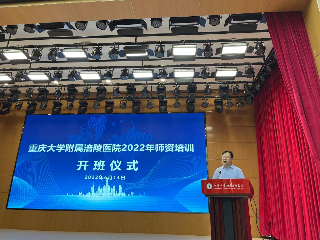 2022年是重庆大学医学院开展本科招生工作的第一年,附属医院的医师是医学院本科教学工作的重要师资力量。为强化教学意识、规范教学行为、更新教学理念、提高教学能力,进而保障医学人才培养质量,重庆大学医学部依托教师教学发展中心,启动了附属医院医师教学能力专项培训工作。2022年6月14日,首轮培训活动在重庆大学附属涪陵医院举行。重庆大学医学院院长刘国祥、附属涪陵医院书记王朝永和院长范德庆出席了开班仪式,全院教学督导专家、教学及教学管理人员等200余人参加了本次培训。开班仪式由范德庆主持。