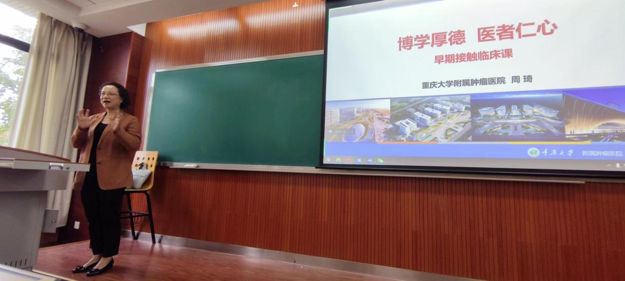 课上,顾玮向同学们介绍了课程基本概况和具体要求。王亚洲详细梳理了重庆大学医学学科的复建之路,并结合学院特色学科和人才培养目标,对同学们的未来发展提出殷切希望。周琦结合自身从医40余年的工作经历,作了题为《博学厚德 医者仁心》的学术报告,带领同学们许下医学誓言。