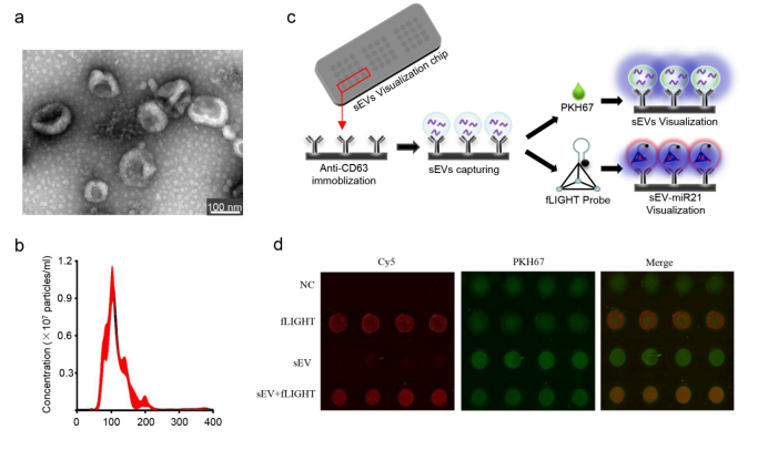 图3. sEVs表征及fLIGHT无膜破损进入sEVs内检测miRNA