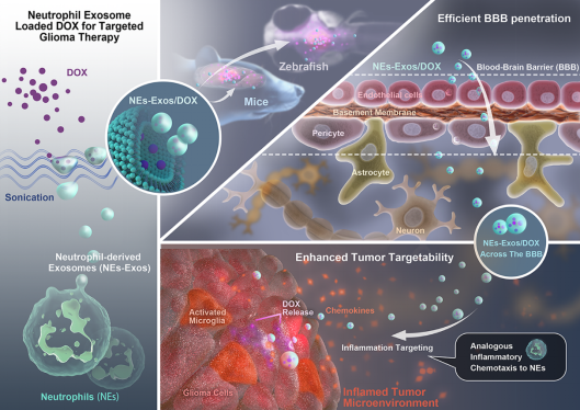示意图:载阿霉素的中性粒细胞外泌体跨越